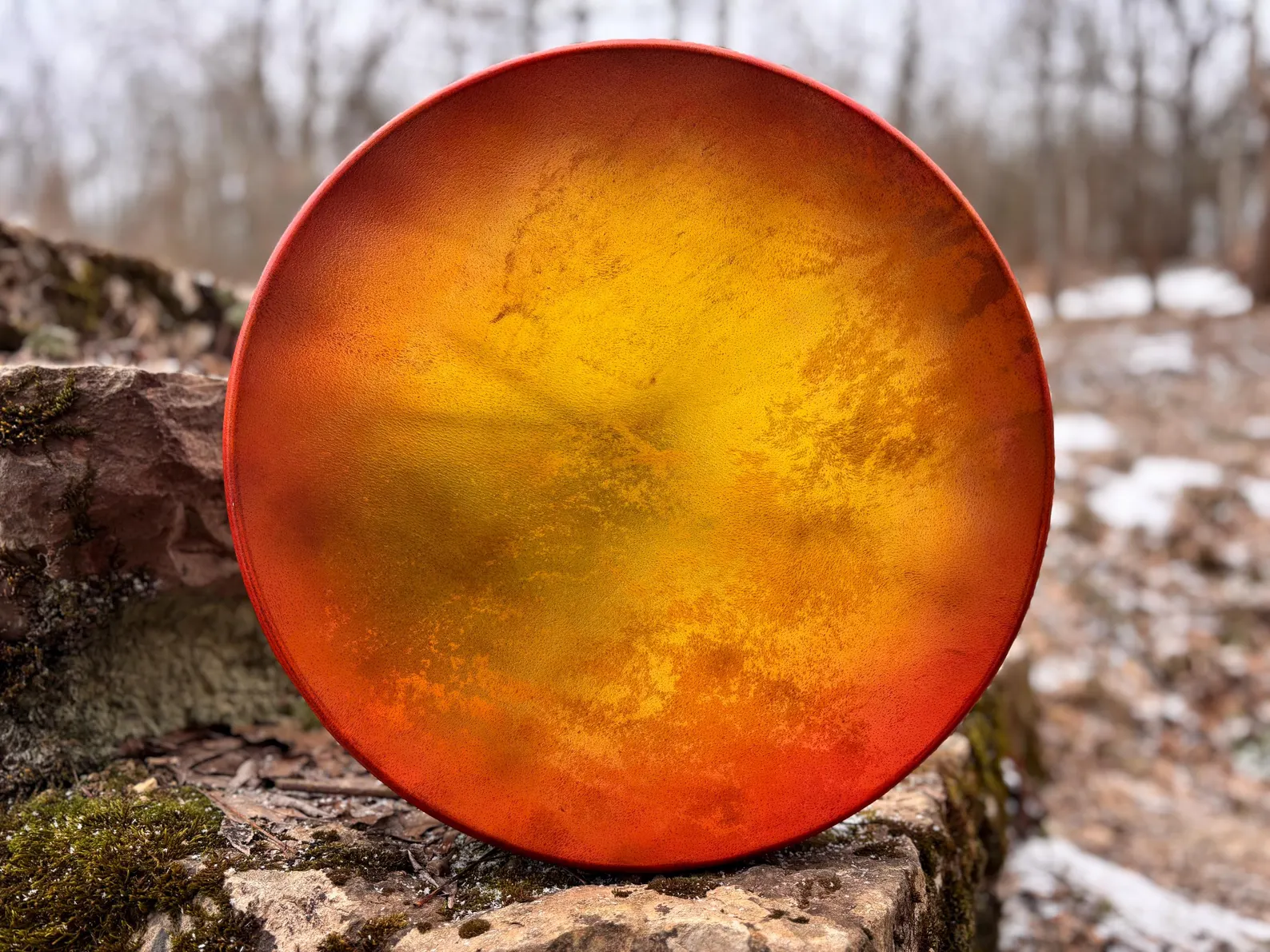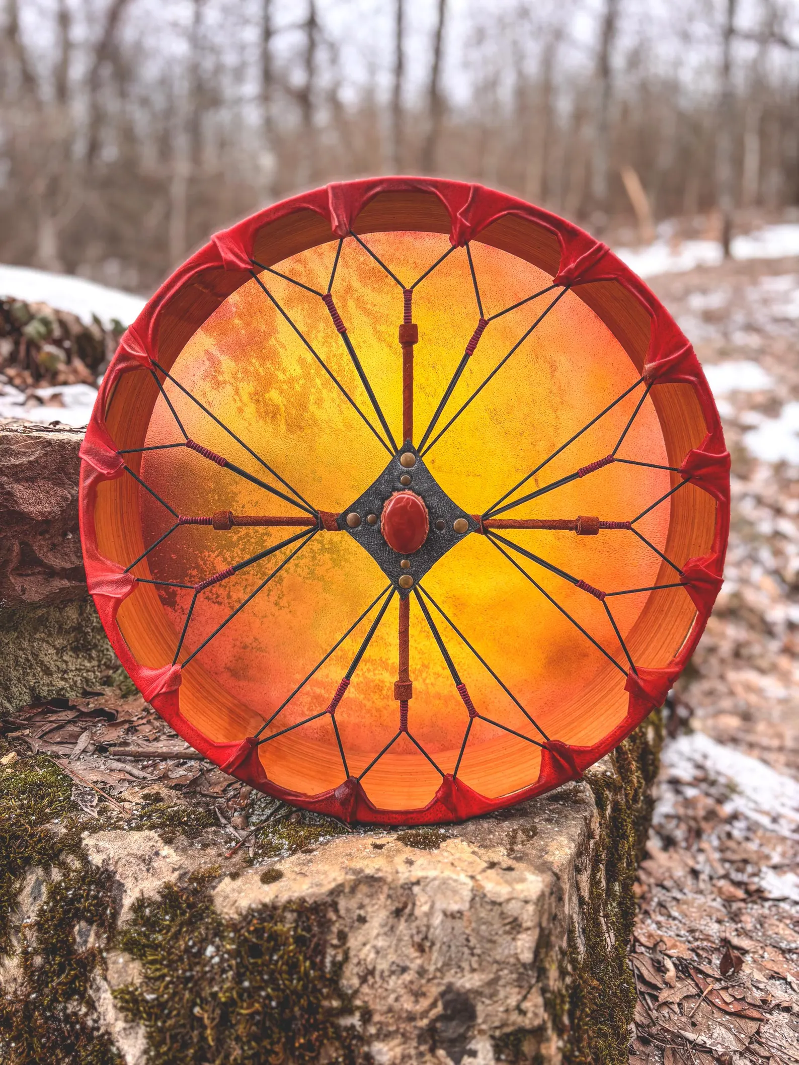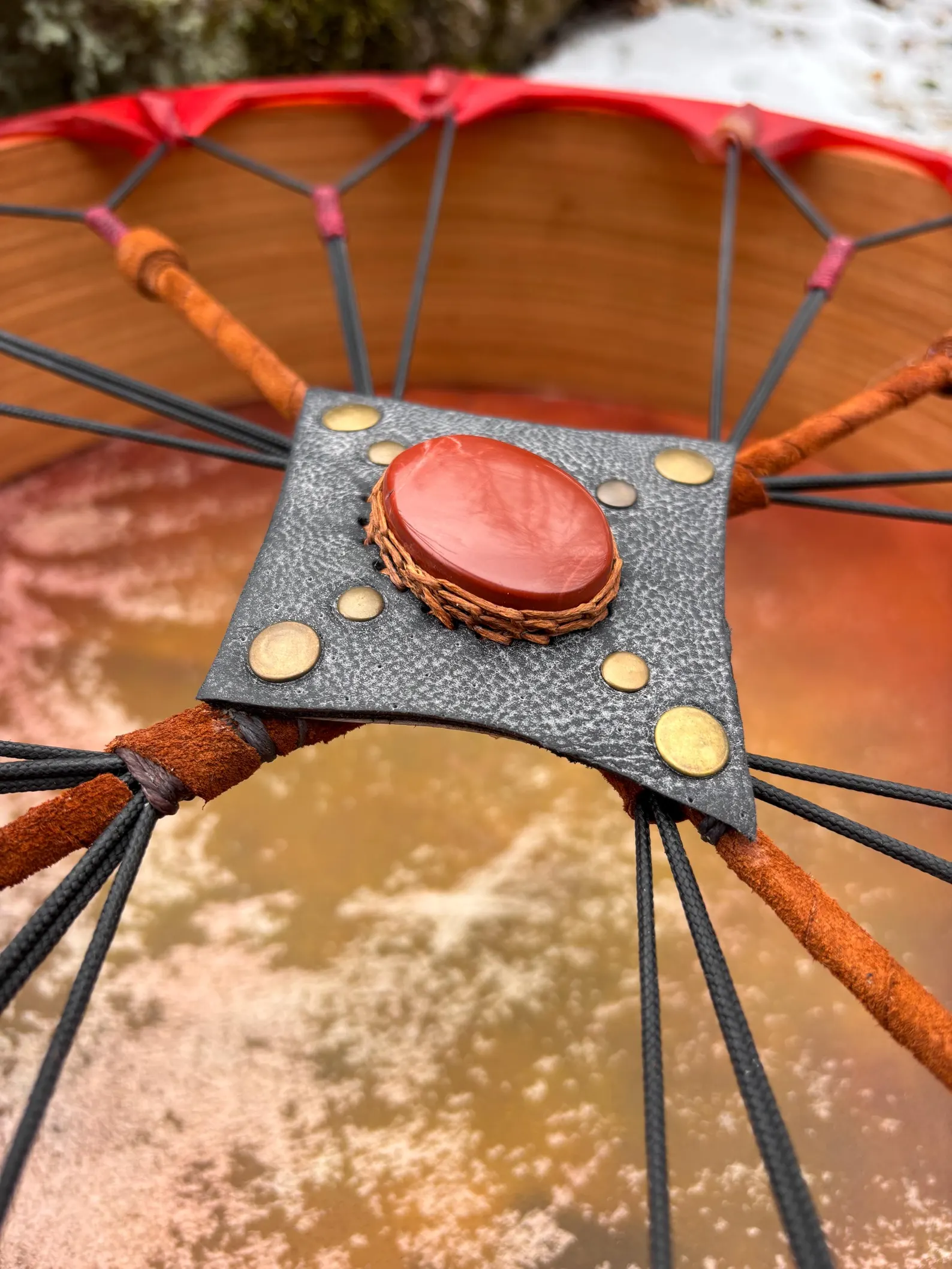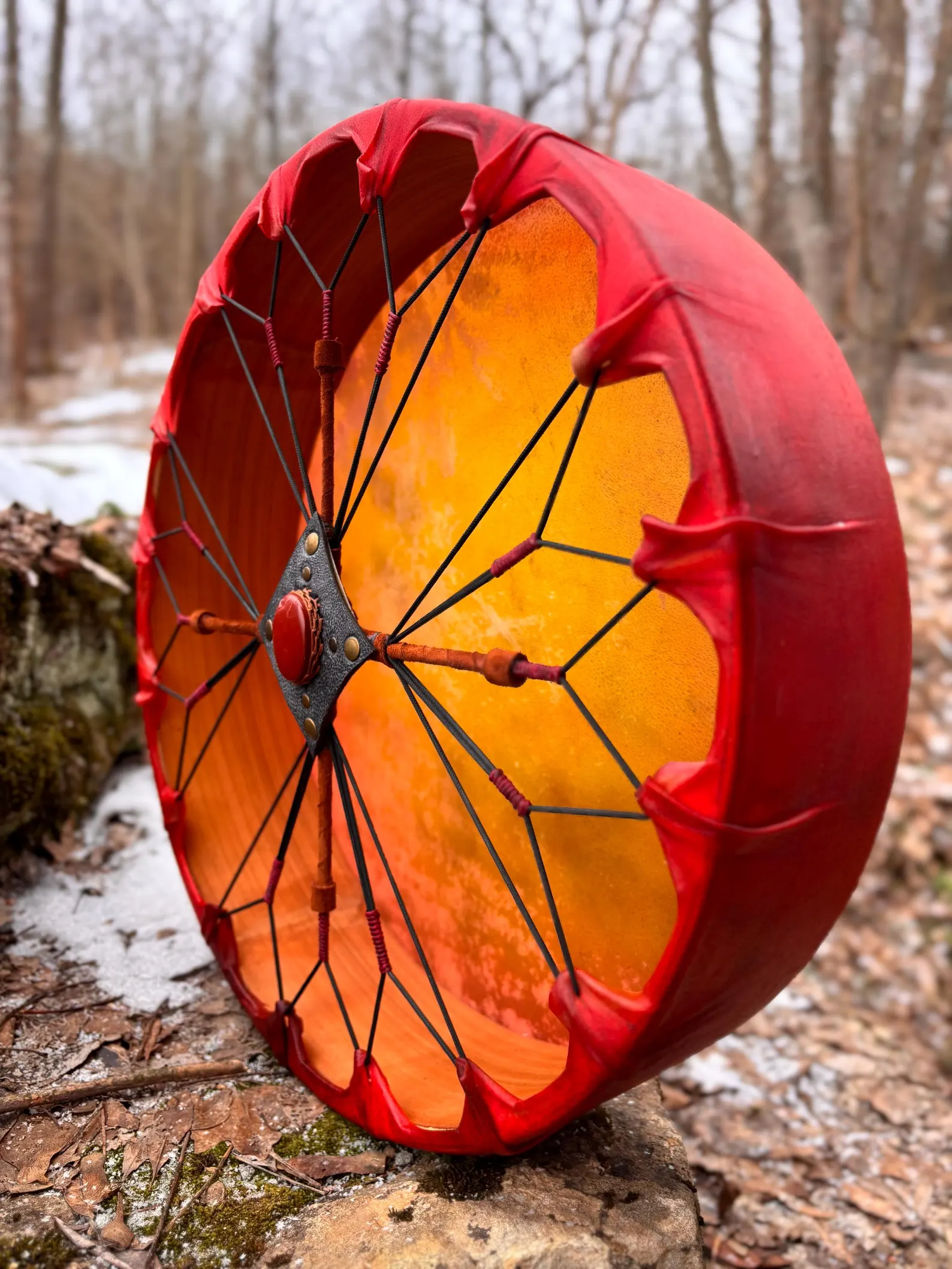 This is a 16″ Large Natural Goat Drum, 4″ Deep, produces a variety of low and high vibrations depending on how is tuned.