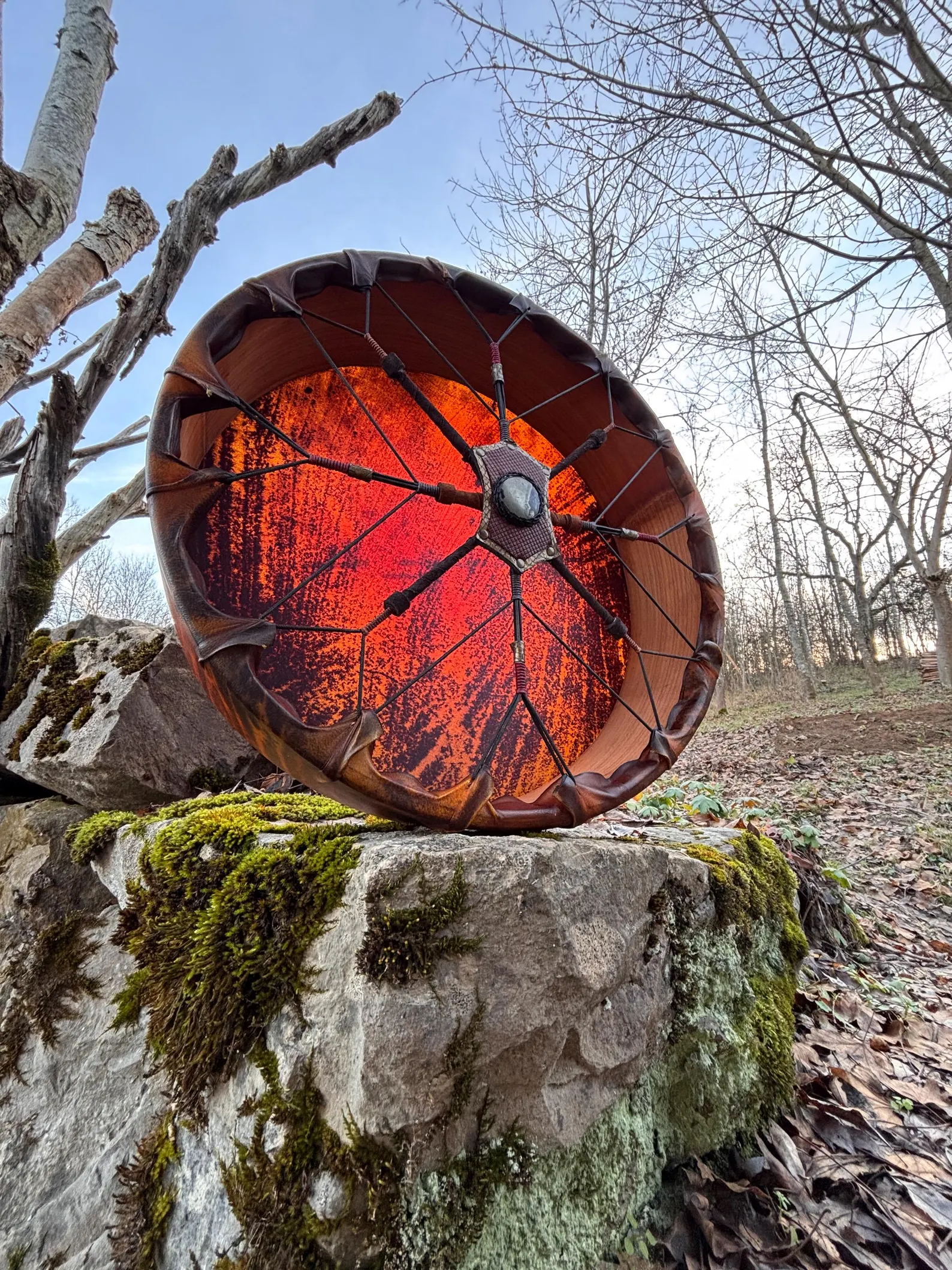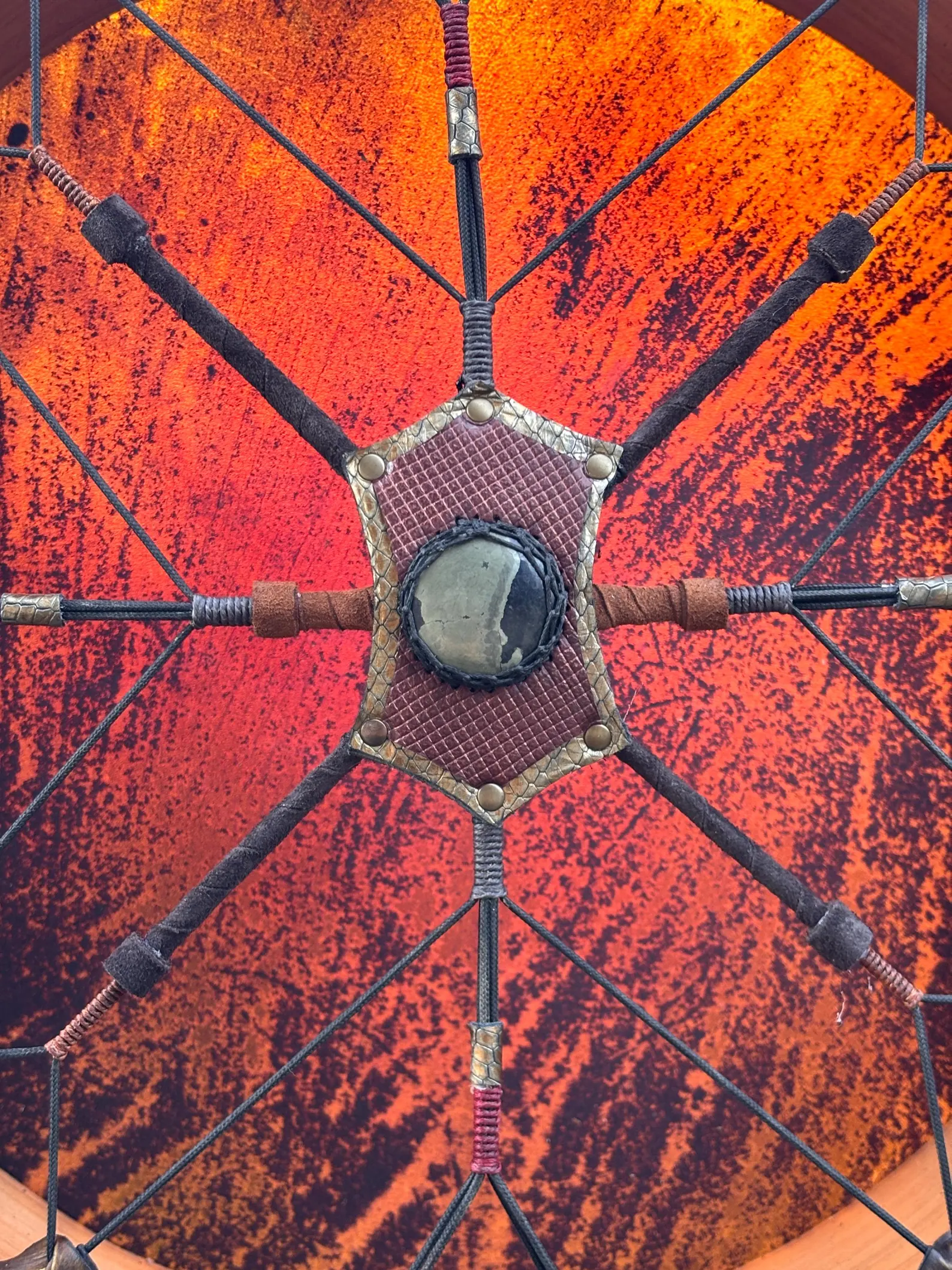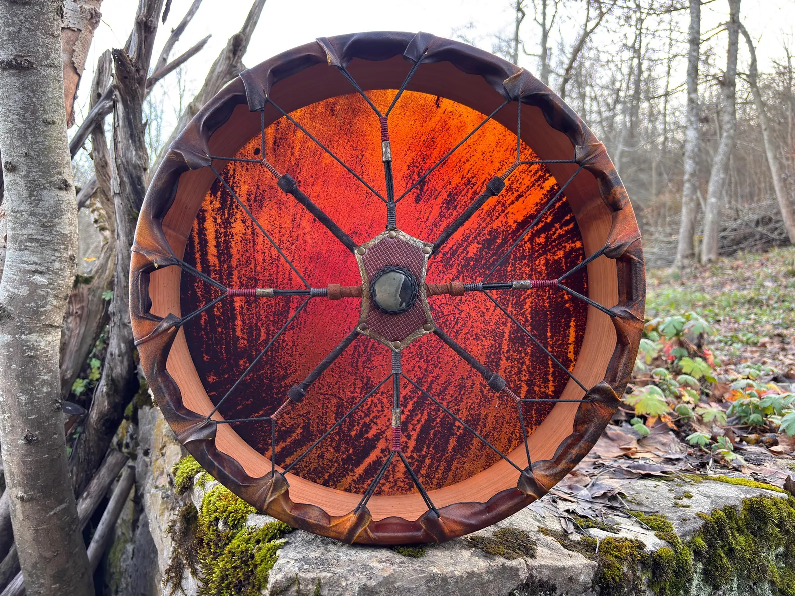 This is a 26″ Large Natural Goat Drum, 4″ Deep, produces a variety of low and high vibrations depending on how is tuned.