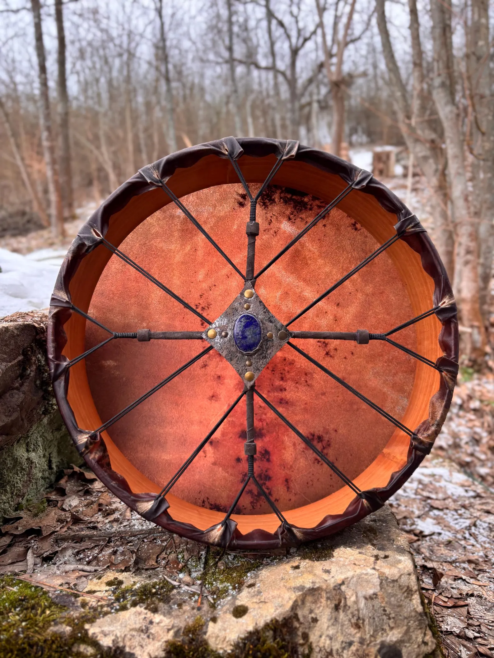 16″ Goat Drum, Shamanic Drum,Frame,Journeying, Cherry wood,Nordic,Lapis Lazuli Handle