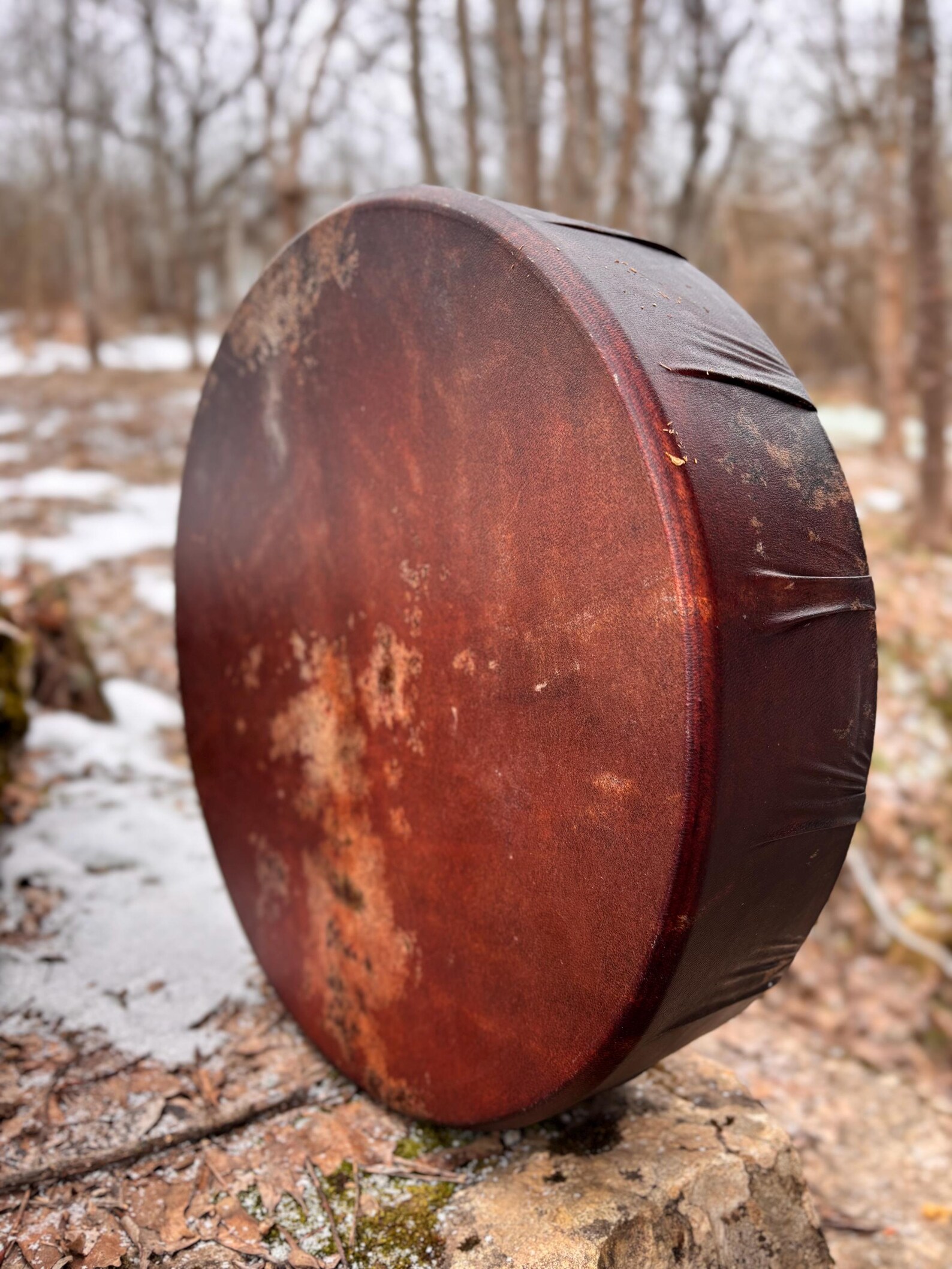 This is a 16″ Large Natural Goat Drum, 4″ Deep, produces a variety of low and high vibrations depending on how is tuned.